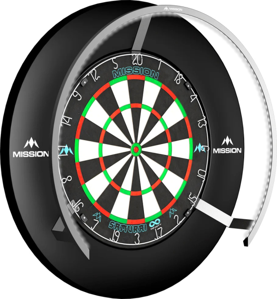 Systém osvětlení se rychle přichytí k jakémukoli terči a jeho jedinečný 270stupňový tvar vám umožňuje snadný přístup k vytahování šipek během hry. Lehký rám je vybaven jasně bílými LED světly, které osvětlují celý terč, aniž by vrhaly stíny nebo oslňovaly hráče.